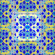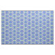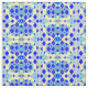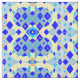 Den här contemporaryn har en modern abstrakt geometrisk mönster av blå diamanter och trianglar som accentueras med gult, guld, orange och turkos.