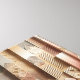 En fantastisk digital arkitekturkonst med en serie vertikala kolonner dekorerade med olika geometriska mönster. Designen visar en rytmisk blandning av sicksack, cirklar, linjer och stamrelaterade motiv i en varm palett av terrakotta, sand och skiffergrå. Denna högtexturerade 3D-reliefkonst är perfekt för att tillföra djup och en sofistikerad, modern-etnisk känsla till samtida interiörer.