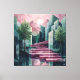 Förvandla din miljö med denna fängslande moderna abstrakta landskapsart. Designen präglas av geometriska strukturer i mjuka rosa och rika gröna toner och förenar harmoniska former och naturliga element som träd och en lugn trappa som leder till avlägsna berg. Perfekt för moderna interiörer, skapar detta konstverk en lugn men ändå dynamisk atmosfär, idealiskt för vardagsrum, kontor eller konstgallerier. Dess unika sammansmältning av abstrakt geometri och naturlig scenografi skapar ett visuellt mästerverk som tilltalar älskare av djärv, innovativ konst.