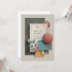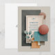Skapa ett sofistikerat uttalande med denna moderna abstrakta bröllopsinbjudan. Designen centreras kring en dynamisk, skiktad kollage av geometriska former med rika, taktila texturer som efterliknar filt eller fint papper. Det centrala textområdet ramas in av en tunn, bronsfärgad rektangulär ram och är placerat mot en mjuk, ljus rosa/beige texturerad panel. Detta överlagras dynamiskt med färgblock, inklusive djupt kolgrått, jordnära terrakotta/rost, dämpat teal/akva och subtila tan/okrafärger, vilket skapar en mid-century modern estetik. Designen mjukas upp subtilt av en delikat eukalyptusgren med blågrå blad som sträcker sig över hörnet, vilket balanserar den skarpa geometrin med organisk form. Ytterligare abstrakta element inkluderar stora terrakottacirklar och mindre fyrkanter, vilket ger hela stycket en konstnärlig, galleriliknande kvalitet. Denna samtida geometriska stil är perfekt för par som planerar ett bröllop i staden, en museimottagning eller någon annan händelse som betonar djärv design, unika färgpaletter och modern konst. Denna design är perfekt för moderna bröllopsinbjudningar, abstrakta förlovningsfestmeddelanden, konstgallerier-inbjudningar eller sofistikerade cocktailparty