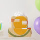 Detta papper har en modernt abstrakt utformning i mitten av århundradet av en guld-cirkel inuti en grönt med orange och vitt rand.