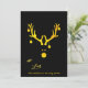 En rolig och söt modern abstrakt bild av ett renhuvud i falskt guld. Med juldekorationer, glaskulor som hänger från hornen. Klassisk svart bakgrund,