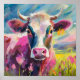 En nyfiken, modern, imponerande målning av en ko, utgiven i ett ljust, dynamiskt färg som rosa, grönt och teal. Tjock abstrakt-penseldrag för struktur och rörelse till sammansättningen, ge kon ett lekfullt och energiskt utseende. De djärva valen i färg och de uttryckliga slaganserna gör detta till en roligt, contemporaryn tar på sig traditionella animaliska porträtter, perfekt för att tillföra ett glatt tryck till vilket utrymme som helst.