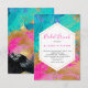 Modern abstrakt konst rosa teal guld möhippa inbjudningar