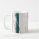 Modern, Abstrakt koppar med kalkkaffe mugg. Börja din dag med en elegans med det här chic kaffet mugg. Utformningen har en förfinad mönster av rand av teal och koppar på ett pristint vitt yta, skapar den ett unikt och snyggt tillägg till köksväskan. Expertgjort av keramik av hög kvalitet ger den både hållbarhet och ett bekvämt grepp för dina föredragna drycker.