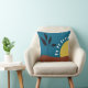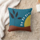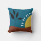 Modern blå trendig kastkudde med färgrik abstrakt illustration av ett landskap med en sol, för hemmet, vardagsrum, kontorsdekoration. Blå brun gul djärva färger för denna moderna minimalistiska kastkudde. Enkel djärv landskap med sol, kullar, träd. Trendig enkel design med djärva färger för kvinnors födelsedagspresent, vänner, mödrar, fruar, nya ägare.