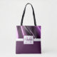 Den här moderna totepåsen har en 3D-abstrakt i den övre halvan och solid lila färg i den nedre halvan med namn och monogram i matchande lila-skuggor på vitt.