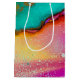 Giftväska med en konstnärlig abstrakt utformning från finare. Vattenfärgning med färg blandning och sammansmältning skapande en fin, flytande marmorerad mönster.