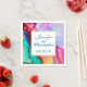 Napkins i bröllop med en konstnärlig abstrakt finare-konstruktion. Vattenfärgning med färg blandning och sammansmältning skapande en fin, flytande marmorerad mönster. Ett vitt ram med en faux-guld-folie gräns överst med personligen inskriven.
