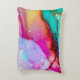 En kudde med en konstnärlig abstrakt utformning från finare. Vattenfärgning med färg blandning och sammansmältning skapande en fin, flytande marmorerad mönster.