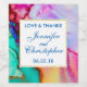 Kärlek & Tack bröllop flaska med en finare konstnärlig abstrakt utformning. Vattenfärgning med färg blandning och sammansmältning skapande en fin, flytande marmorerad mönster. Ett vitt ram med en faux-guld-folie gräns överst med personligen inskriven.