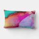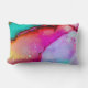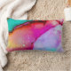 Ländkudde med en finurlig konstnärlig abstrakt design. Vattenfärg-målning med färger som blandar sig och skapar ett fint flödande marmorerat mönster.
