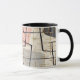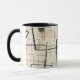 Denna moderna abstrakt tygmugg för det mitt- århundradet presenterar en kopia av ett vintage50-taltyg. Bakgrunden är ecruen med svart, och guld fodrar. Tyget presenterar också grå färg, och rosamodern konst formar. Det är en tryckvåg från förflutnan! Denna är den perfekta designen för någon som älskar objekt med en retro känselförnimmelse.