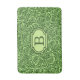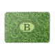 Retro modernt badmatt med en anpassningsbar monogram i en halvabstrakt, över hela mönster i ro och knoppar - blandad digital mediekonst i lätt kalk/grönt för chartreuse och djupa grönten i gräs