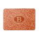 Retro modernt badmatt med anpassningsbar monogram i en halvabstrakt, över hela mönster av ro och knoppar - blandad digital konst i djup mandarin/tangerin-orange och mjuk pastellorange