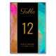 Elegant-sofistikerad akrylmålning bröllop bord-kort i pulserande shock rosa-, teal-, gult guld- och svart färg-palett med abstrakt-penseldrag och faux guld modern contemporary-skript som är fullt redigerbar typografi. +++++++++ Kortet är lämpligt för alla årstider trendig chic stil bröllopsreceptioner
