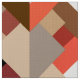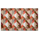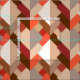 Fabric in a Mid Century Modern Design of layered triangles in shades of Brown, taupe, beige, rust and camel, accel with mandarin orange