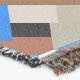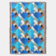 En modern design av trekantiga skiktskorn i mitten av århundradet i skuggor av koboltblått, turkos, kakaobunt och taupbrunt, accentuerad med vitt
