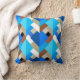 Dekorativ kudde i en modern utformning av trekantiga skiktskal i koboltblått, turkos, kakaobunt och taupbrunt, accentuerad med vitt