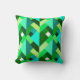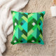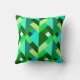 Dekorativ kudde i en modern design av lagrade trianglar i skuggor av djup grönt, kalk, akva, teal och turkos