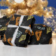 Ljud moderna abstrakter i gult av grått och orange på svart bakgrund. Coola halloween abstrakt mönster