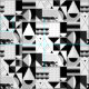 Geometriska former för häftig svart och vit abstrakt utformas på Fabric med en organisk blandning av trianglar, halv måne, punkter och linjer. Ett unikt arkitektoniskt och komplext tema för den moderna hantverksentusiasten som kärlek har ett texturerat utseende.