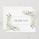 Modern affärsverksamhet tack grönska vattenfärg kort med eleganta botaniska blad som ramar in ditt tackmeddelande i chic typografi. Du kan anpassa genom att lägga till ditt namn och kontaktinformation med ditt eget tackmeddelande på baksidan. Ett perfekt sätt att säga tack! Designad av Thisisnotme©