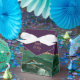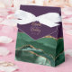Denna eleganta moderna presentförpackning har en smaragdgrön akvarell-agatdesign med guldglitter. Personalisera den med brudens och brudgummens namn i guldfärgad handskriven skrift över ett stort et-tecken på en lila bakgrund, tillsammans med vigseldatum nedan.