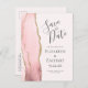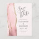 Den här eleganten är modern när du sparar datumet för vykort och har en vattenfärgsagat i rosa gräns som trimmas med faux guld glitter. Anpassadet är kol-grått på blekens bakgrund. På baksidan upprepas informationen, tillsammans med en returadress för anpassadet.
