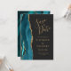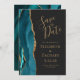 Modern Agate Teal Guld Mörk Bröllop spara datum Inbjudningar