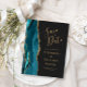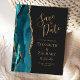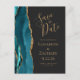 Modern Agate Teal Guld Mörk Bröllop spara datum Meddelande Vykort