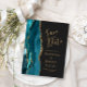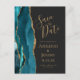 Modern Agate Teal Guld Mörk Bröllop spara datum Vykort