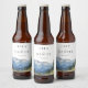Modern akvarell berg vildblomma bröllop ölflaska etikett