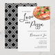 Bjud in gäster till din förlovningsfest, repetitionsmiddag, brudparsdusch eller bröllop med dessa moderna "kärlek och pizza"-inbjudningar.
