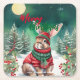 Modern akvarell Kanin julgran Snö Underlägg Papper Kvadrat