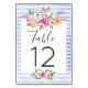 Modern akvarellblomma i marinblå ränder Bordskortn Bordsnummer