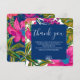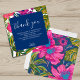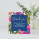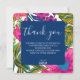 Denna blomster- och botaniska bröllopsdusch tackkort har akvarellblommor i rosa, lila och persikofärg och blad i grönas ljusa nyanser med varmröd bakgrund. En perfekt färgrik blommig bröllopsinbjudan