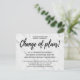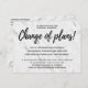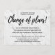 Meddela att du senarelagt eller inställt din ceremoni, mottagning, hela eller delar av ditt evenemang med det vackra anslagskortet "Förändring av planer" på vykort i bröllop. Modern slimmad vit marmorbakgrund i contemporary med svart handskriftsstämpel är klassisk och perfekt för att hålla dina gäster informerade.
