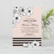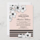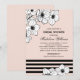 Svarta och vita linje ritade anemonblommor poppar mot en mjuk rosa bakgrund på denna moderna bröllopsbröllopsinbjudan. Feta svarta ränder längs ner och krävande serif-typografi skapar en samtida, mode framåt estetik medan kalligrafi skrift lägger till en romantisk touch. Ett vackert alternativ för en stilfull dusch eller lunch. Varje detalj är helt anpassningsbar.