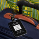 Bon Voyage! Njut av den här professionellens anpassningsbar-bagagemärke med logotyp, namn, taggar och webbplatsinformation över en svart bakgrund. Perfekt för företagsresor.