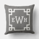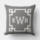 Snyggten och den moderna utformningen av kvadratiska accentstolpar har en grekiska nyckel-geometrisk utformning av ram och ett monogram som kan vara personlig. Grått och vitt färg. Bakgrunden till färg kan ändras.
