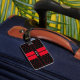 Den här snyggt personlig bagagetaggen innehåller både ditt namn och ditt första brev i ett monogram mönster. En röd, svart och vit design med klassisk tävla rand för dubbla på framsidan och dina kontaktuppgifter på baksidan. En underbar gåva till vänner och familj för födelsedagar, helgdagar, fars dag eller en gåva till dig själv!