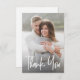 Uttryck tacksamhet på ett lika vackert sätt som firande. Tack vare den här moderna möhippan med fotobilder i anpassningsbarna har du en ren utformning med elegant som lyfter fram ditt foto med ett handskript i stil för ett tidlöst utseende. Perfekt för blivande brider. Med dessa små anteckningskort kan du din uppskattning med familj och vänner på ett personlig och på ett minnesvärt sätt. Anpassa meddelandet och signera på baksidan. Oavsett om dessa kort är parade med gåvor, möhippa är till fördel för eller skickas ut efter evenemanget, så är de som både en tankfull gest och en keepé som älskade kommer att uppskatta. Den här designen är utformad för dagens moderna brud och blandar enkelhet med hjärtlig charm. Den skapar den perfekt för möhippor, förlovningsfester eller bröllop tack och lov. Det här tackkortet är enkelt att anpassa, chic i stil och designat att stå ut med. Det är mer än bara stationär - det är biet i din kärlek-artikel.