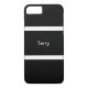Modern och snyggt mobilfodral med svart och vitt rand mönster. Stora svarta rand och små vita rand. Ditt namn skrivs ut i en vit text.
