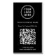 Modern reklammagnet för svart affärskort med din QR-kod som gör att kunderna kan söka efter en lista över dina produkter, tjänster, priser eller annan information. Ladda upp företagets logotyp och QR-kod och lägg till ditt företag namn, webbplats, slogan, mobilt nummer, gatunamn adress etc. i ett vanligt vitt teckensnitt.