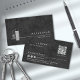 Elegant svart och vitt affärskort för både småföretagare och företagare. Utformningen har en sofistikerad Logotyp i Torn i klassy stil. Perfekt för en arkitekt, insida-designern och gods agent. Det finns gott om utrymme för mediehandtag och kontaktuppgifter för social. Det här konstnärliga stil-affärskortet kommer definitivt att imponera på dina klienter.