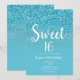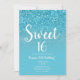 Modern Aqua Blue Glam Glitter Sweet 16 översätts t Inbjudningar