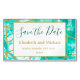 Den moderna Chicen Aqua Blue Watercolor och Guld Färg Spara datumkortets magnet A-kort med elegant med slender enkel geometrisk akvafärg med blå bakgrund. Ändras enkelt till din information. Kortet är en del av en stationär Bröllop Suite of bröllop.