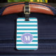 Anpassa detta moderna akvblått rand mönster och bagagetaggen i monogram. Anpassa framsidan med ditt monogram brev och lägg till kontaktinformationen på baksidan. Underbar gåva till Mors dag, födelsedag eller något annat särskilt tillfälle.