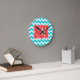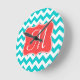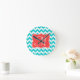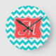 Modern Aqua Coral Chevron Zig Zag Rand Fabric Print Mönster Monogram Initial Wall Clock Personlig